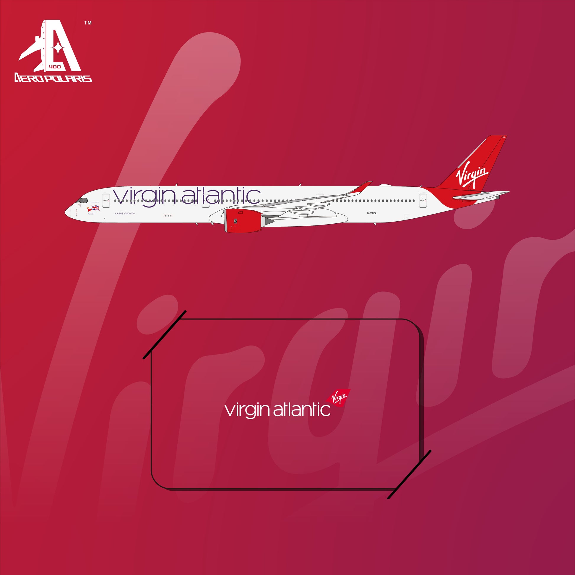 Enhance your collection with the Aero Polaris Virgin Atlantic Airbus A350-1000, registration G-VTEA, in 1:400 scale. This diecast model replicates Virgin Atlantic’s flagship aircraft, known for its sleek design, modern efficiency, and elegant livery that reflects the airline’s premium brand.