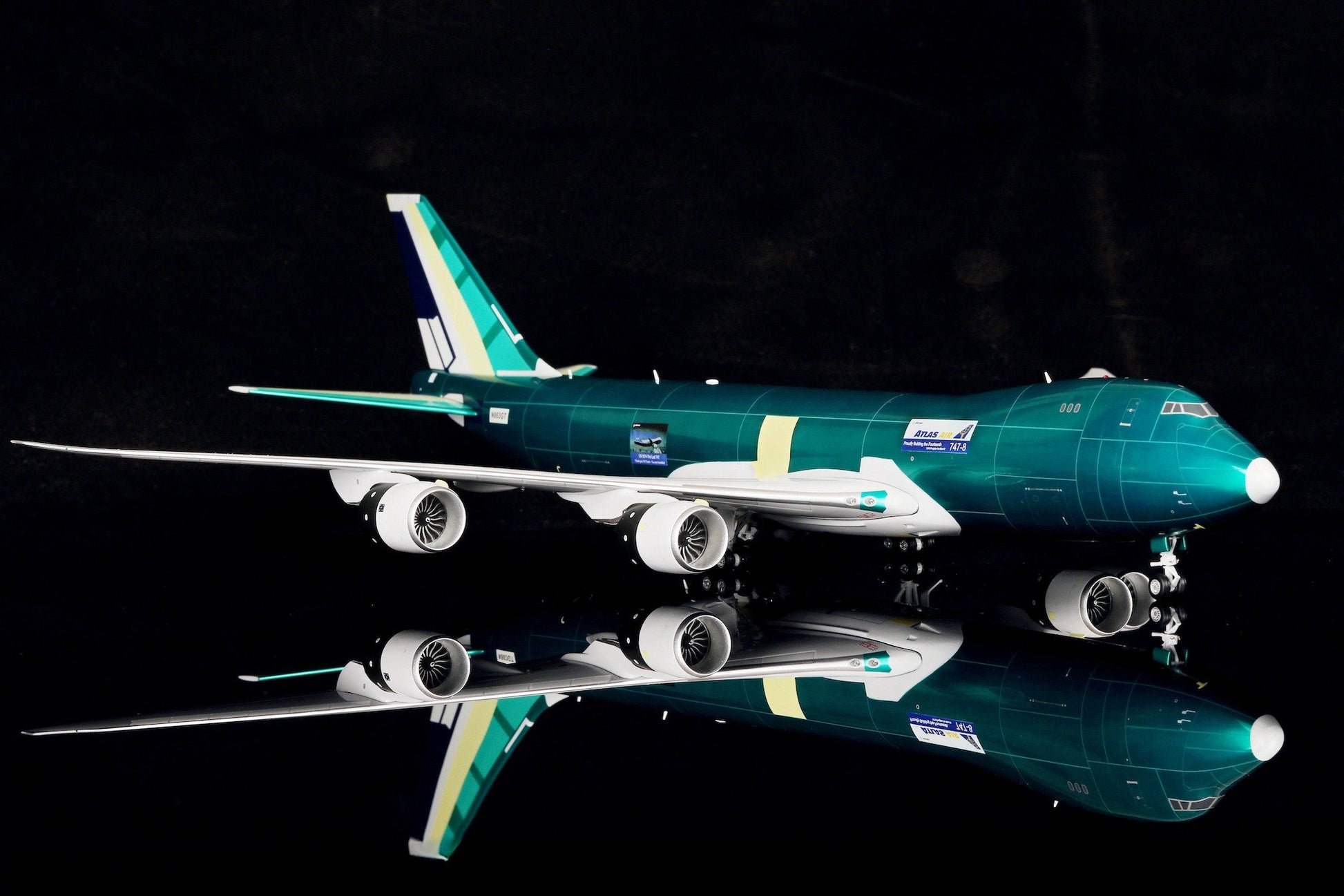 This 1:200 scale release by SQ Wings perfectly captures the imposing size and detail of the 747-8F while highlighting a rarely modeled livery, making it a centerpiece addition for any collector of Boeing prototypes, freighters, or Atlas Air models.
