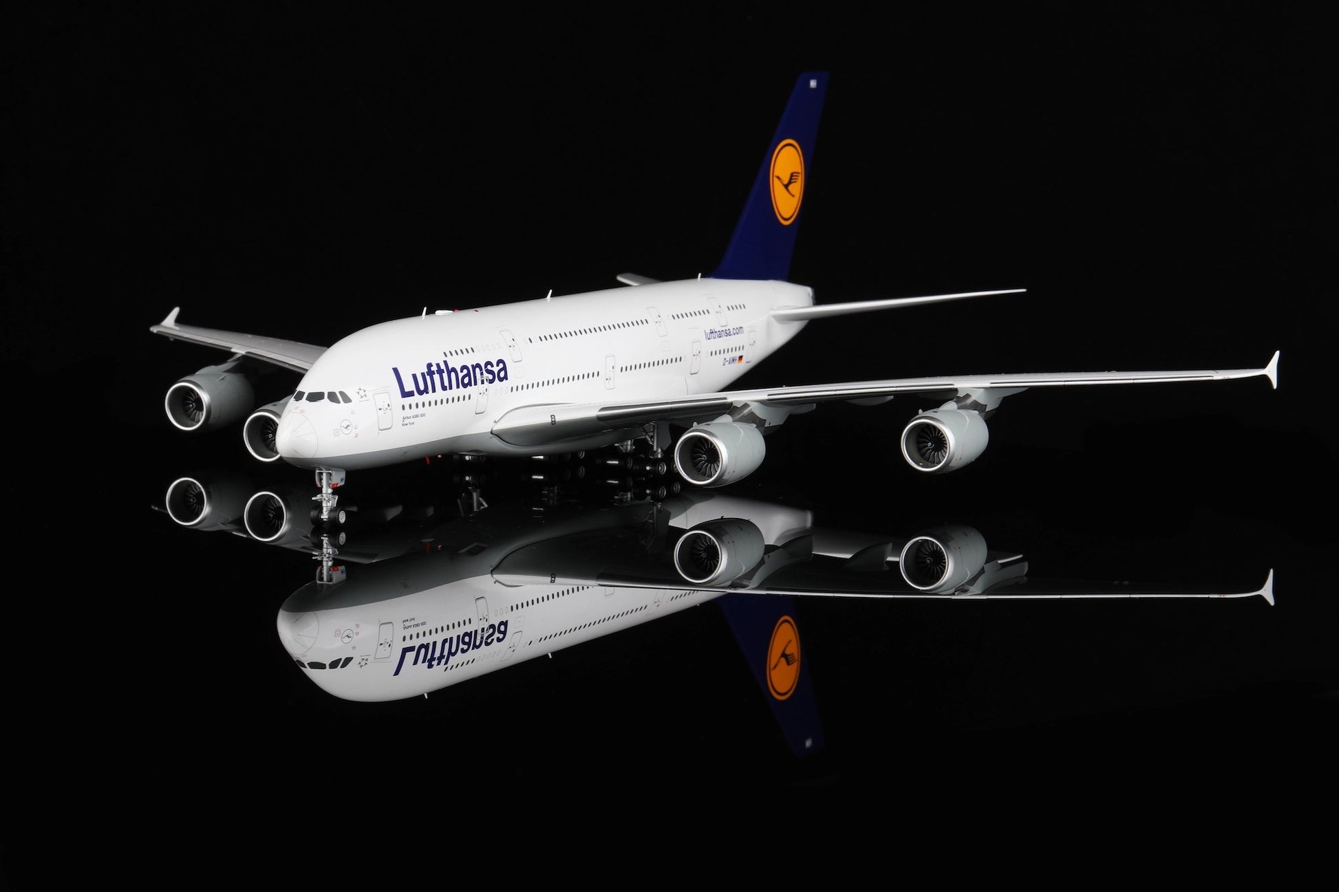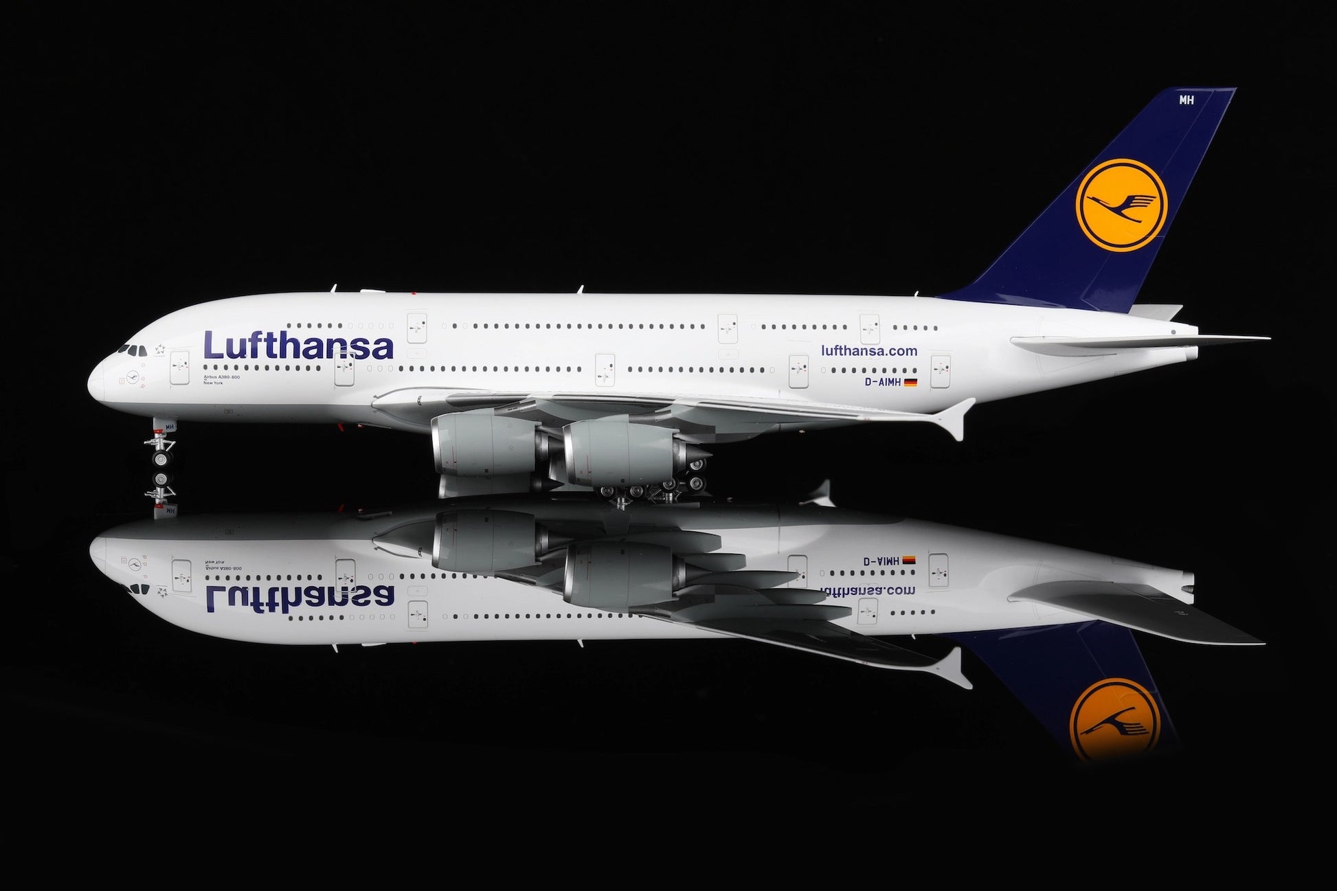 The real Airbus A380 D-AIMH, named New York, joined Lufthansa in 2010 and has served on some of the carrier’s busiest international routes. As one of the few European airlines to operate the A380, Lufthansa’s superjumbo has become a favorite among travelers for its spacious cabins and quiet, comfortable flights.