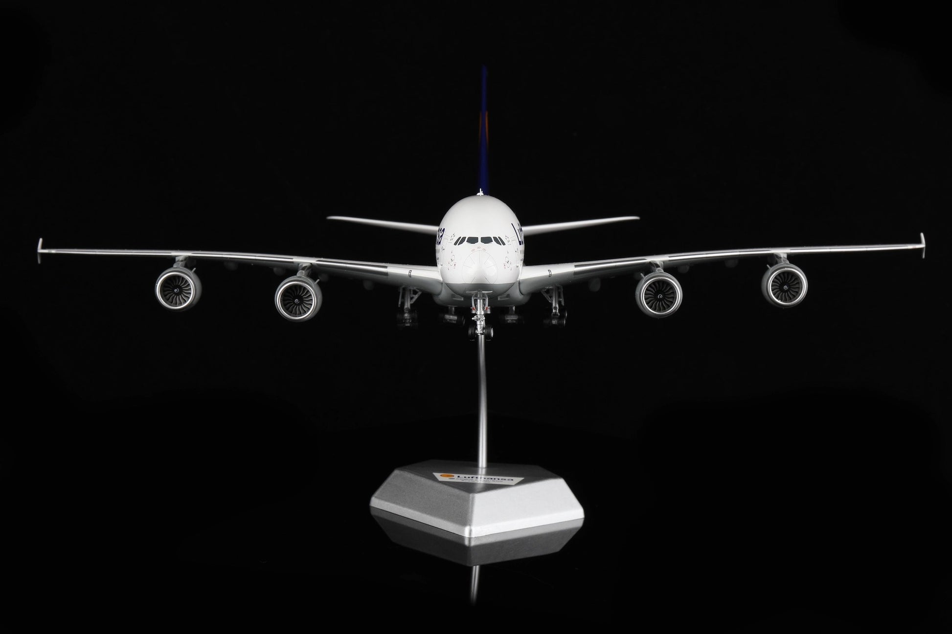 This highly detailed model captures the size and presence of the Airbus A380 with SQ Wings’ signature precision. Crafted from quality diecast metal, the model features an accurate Lufthansa livery with its bold blue tail and yellow crane logo, realistic surface detailing, finely printed windows, doors, and markings, as well as detailed engines and landing gear. Collectors will appreciate its sturdy construction, realistic proportions, and elegant finish that make it an eye-catching centerpiece in any aviation collection.