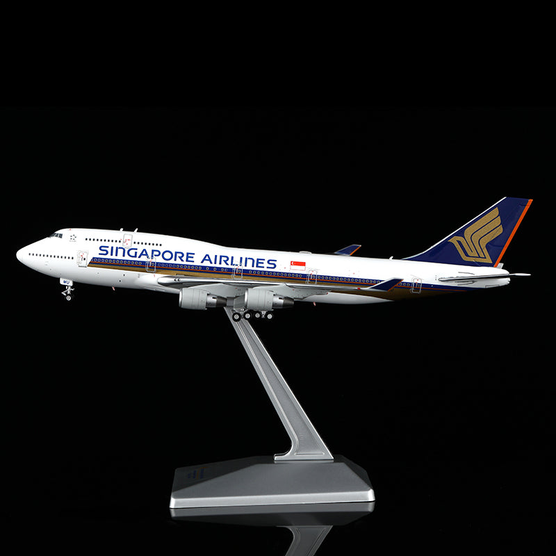 Attention to detail is evident in the realistic engines, accurately replicated landing gear, and finely printed titles along the fuselage, all highlighting the grace of the 747-400. The model reflects the aircraft’s role as a flagship for Singapore Airlines, serving international routes with luxury and reliability.